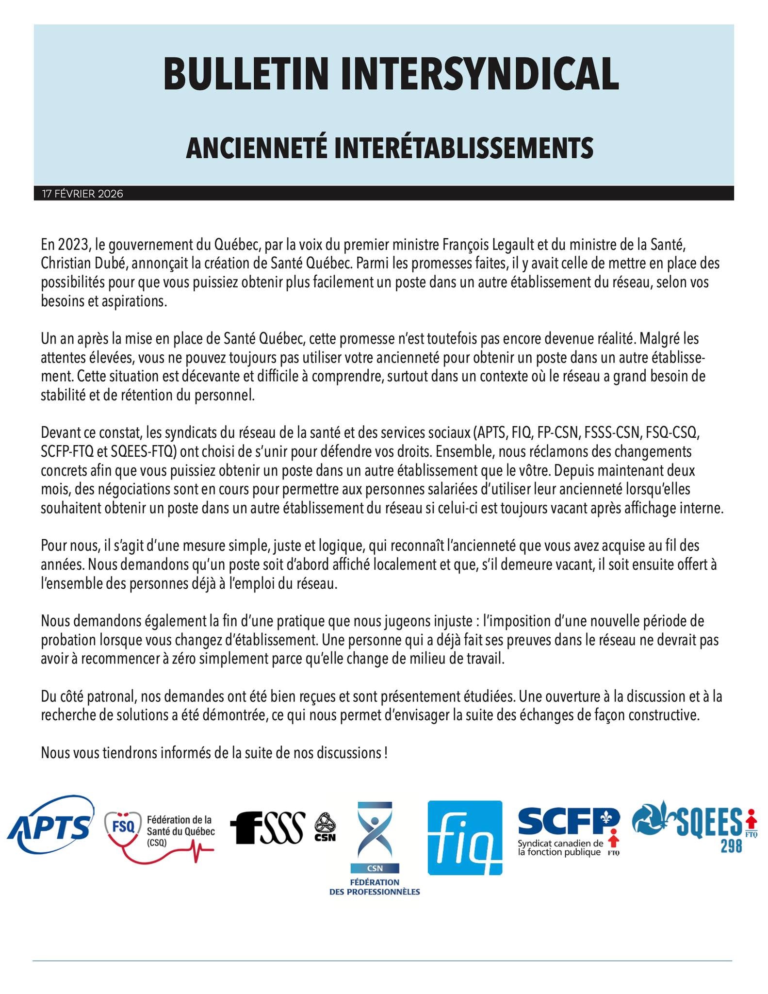 Bulletin Intersyndical – Ancienneté Interétablissements
